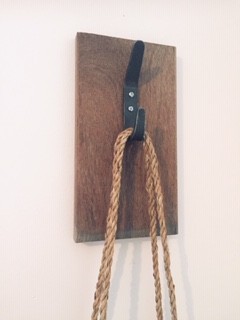 Bel objet artisanal et déco pour cette patère en bois ipé et fer, à accrocher.